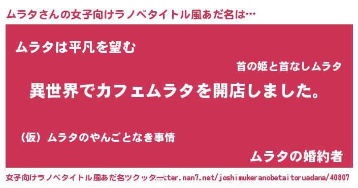 | ヘコむあだ名 | 『ムラタ(震え声)』『ムラぷりん』 |