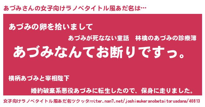 | 胡散臭い通販商品みたいなあだ名 | 『ガンによく効く冬虫夏草…その名も「あづみ」』 |