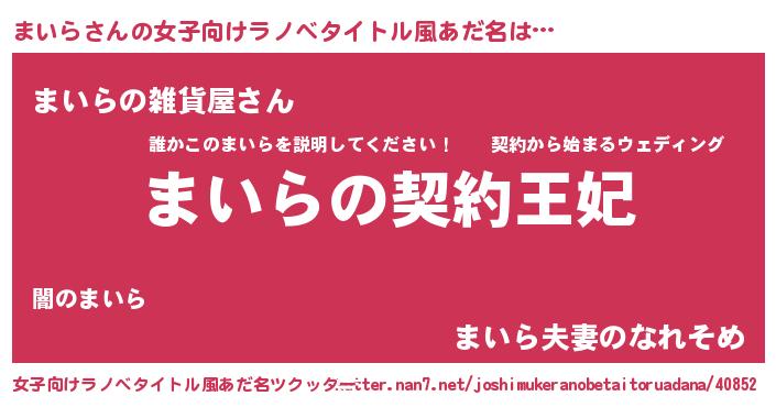 | 意味不明あだ名 | 『永久保存まいら』『まいらフォーエバー』 |
