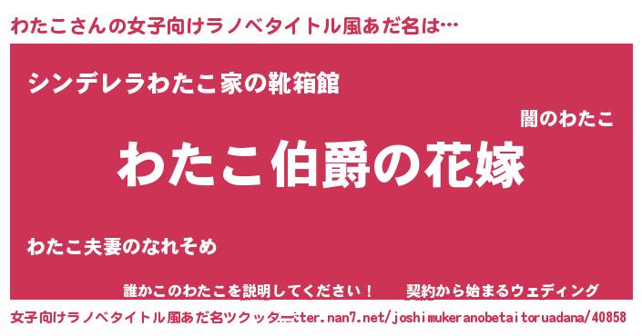 | ポケモン風あだ名 | 『ワタコダネ』『メロワッタ』 |
