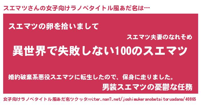| 胡散臭い通販商品みたいなあだ名 | 『絶対に幸福をもたらす水素水…その名も「スエマツ」』 |
