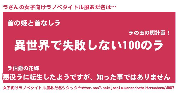 | 男性向けラノベタイトル風あだ名 | 『ラという概念が存在しない退屈な世界 』 |