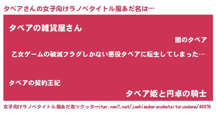 | 男性向けラノベタイトル風あだ名 | 『この素晴らしい世界にタベアを!』 |