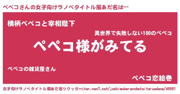 | 意味不明あだ名 | 『とにかく怪しいペペコ』『自称ペペコ』 |