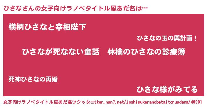 | 男性向けラノベタイトル風あだ名 | 『魔弾の王とひさな』 |