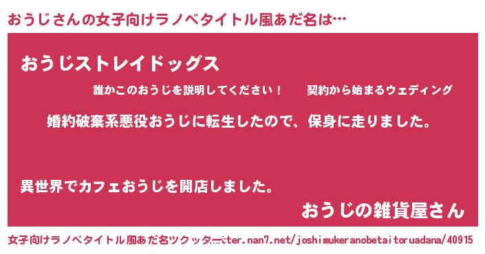 | 男性向けラノベタイトル風あだ名 | 『オウジスレイヤー』 |
