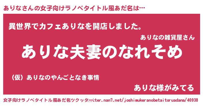 | ヘコむあだ名 | 『ありな(笑)』『ありお』『牛乳』 |