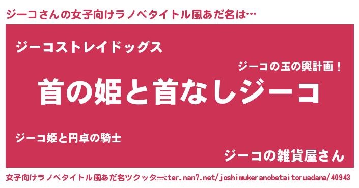 | ファンタジー風あだ名 | 『ゼジートゥ』『エターナルジーコー』 |