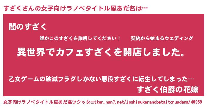 | 意味不明あだ名 | 『永久保存すざく』『自称すざく』 |