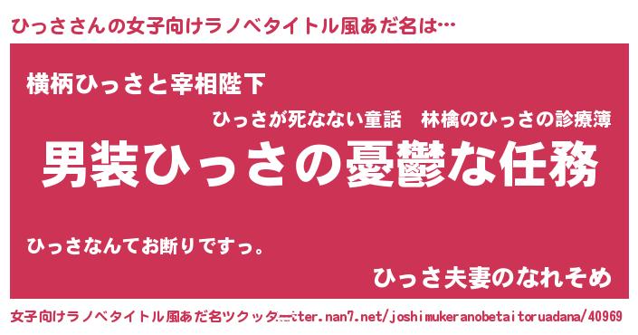 | 男性向けラノベタイトル風あだ名 | 『うちのひっさが世界を掌握している!』 |