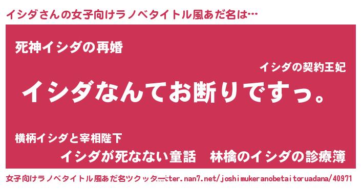 | 男性向けラノベタイトル風あだ名 | 『魔法科高校のイシダ』 |