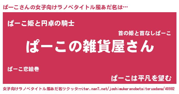 | 男性向けラノベタイトル風あだ名 | 『やはりぱーこの青春ラブコメはまちがっている 』 |