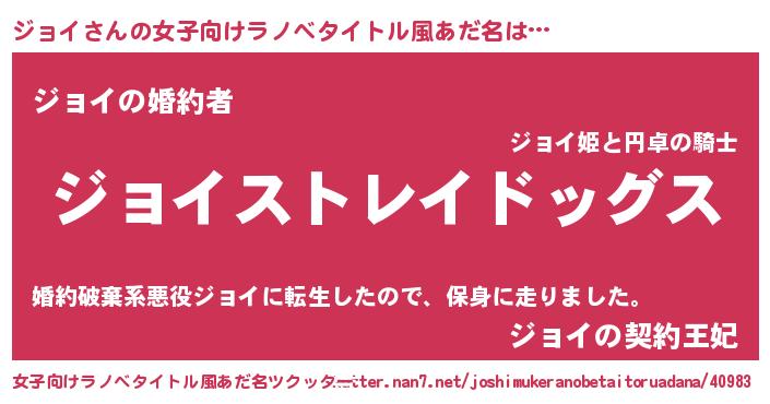 | 意味不明あだ名 | 『自称ジョイ』『ジョイフォーエバー』 |