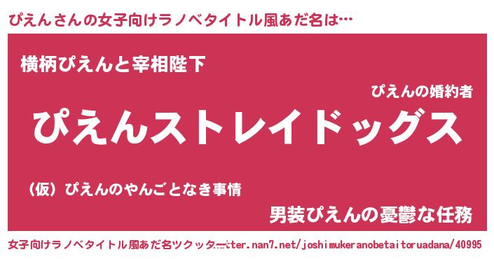 | 男性向けラノベタイトル風あだ名 | 『Re:ぴえんから始める異世界生活』 |
