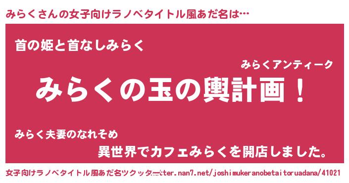 | 男性向けラノベタイトル風あだ名 | 『転生したらみらくだった件』 |