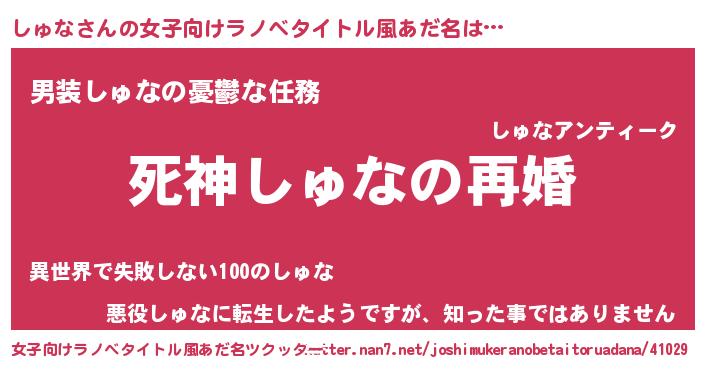 | 男性向けラノベタイトル風あだ名 | 『ノーゲーム・ノーシュナ』 |