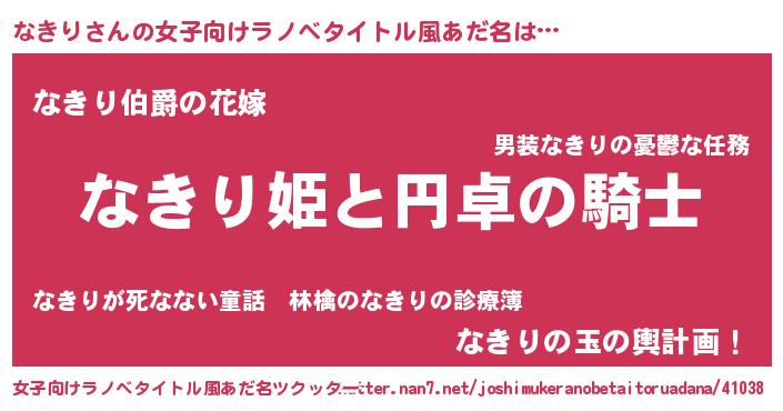 | 男性向けラノベタイトル風あだ名 | 『ナキリアートオンライン』 |