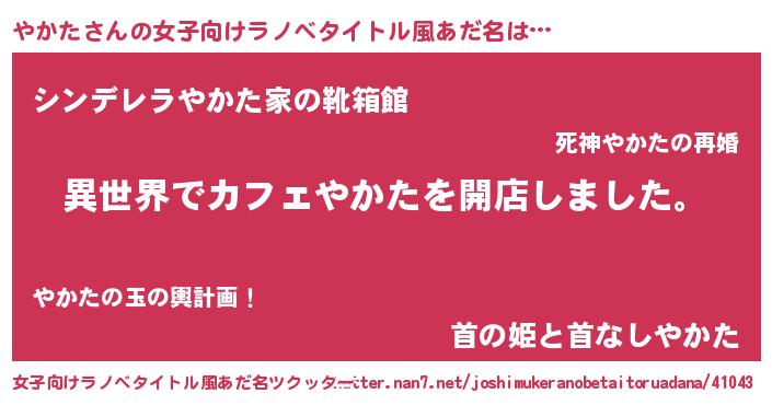 | 意味不明あだ名 | 『永久保存やかた』『エリンギ科やかた属』 |
