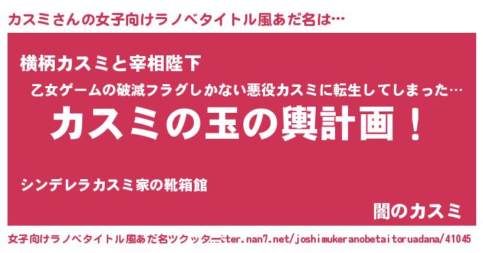 | ヒーロー風カッコイイあだ名 | 『最強戦士カスミ』『仮面カスダー』 |