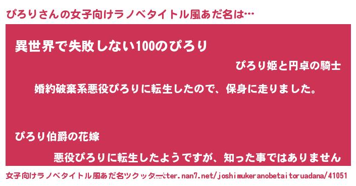 男性向けラノベタイトル風あだ名 | 『ピロリスレイヤー』 |