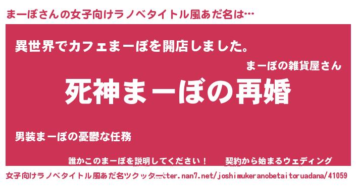 男性向けラノベタイトル風あだ名 | 『ノーゲーム・ノーマーボ』 |
