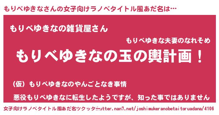 | 男性向けラノベタイトル風あだ名 | 『もりべゆきな~年齢イコール彼女いない歴の魔法使い~』 |