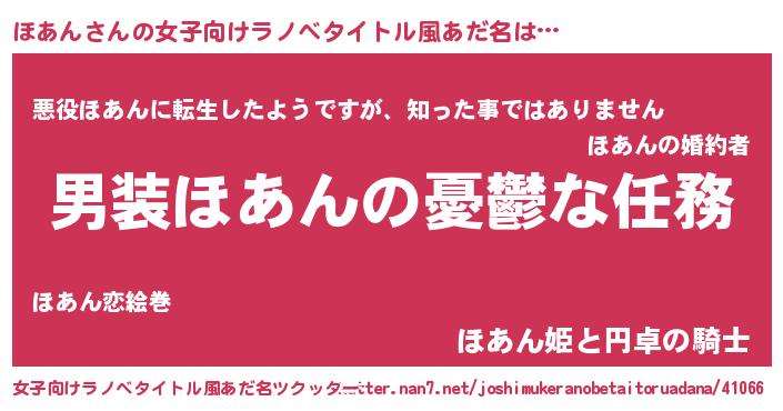 | 胡散臭い通販商品みたいなあだ名 | 『あなたにだけ特別に提供する世界で10本だけ現存している希少なブランデー…その名も「ほあん」』 |
