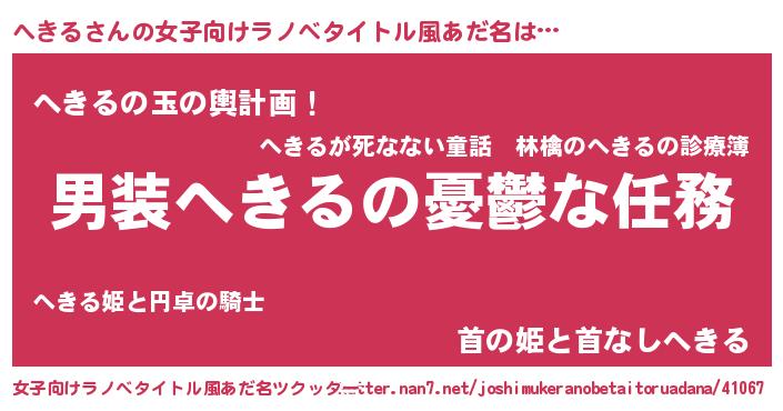 | 胡散臭い通販商品みたいなあだ名 | 『世界中を虜にした100年もののヴィンテージワイン…その名も「へきる」』 |