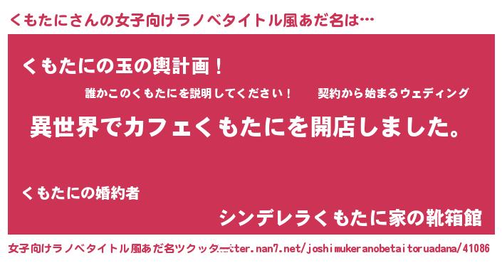 | 男性向けラノベタイトル風あだ名 | 『誰もが恐れるあのくもたにが、ぼくの専属メイドになるようです。』 |