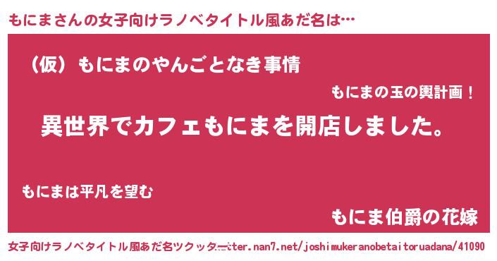 | 男性向けラノベタイトル風あだ名 | 『誰もが恐れるあのもにまが、ぼくの専属メイドになるようです。』 |