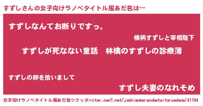 | 意味不明あだ名 | 『住所不定無職すずし(2歳)』『自称すずし』 |