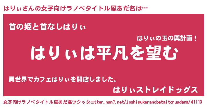 | 男性向けラノベタイトル風あだ名 | 『ダンジョンにはりぃを求めるのは間違っているだろうか』 |