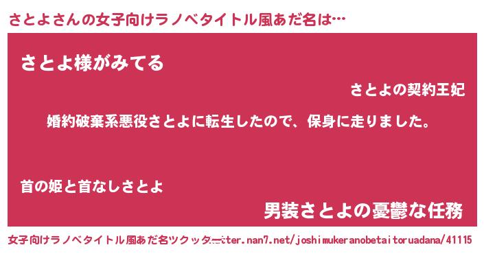 | 男性向けラノベタイトル風あだ名 | 『サトヨスレイヤー』 |