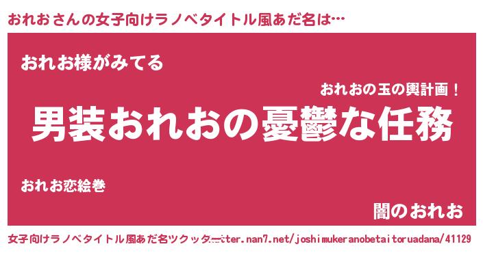 | 意味不明あだ名 | 『とにかく怪しいおれお』『自称おれお』 |