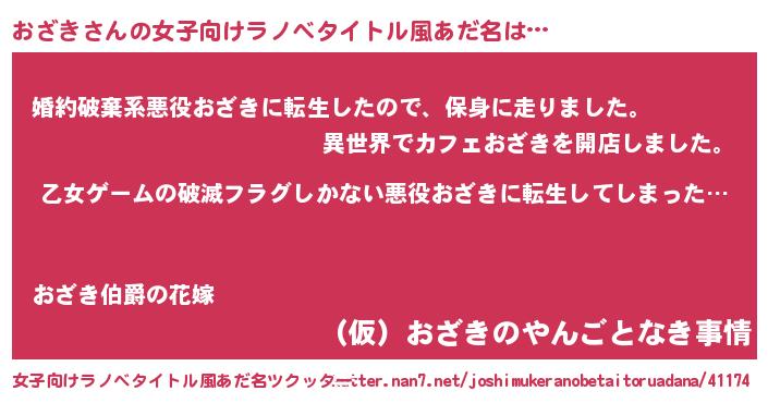 | 意味不明あだ名 | 『住所不定無職おざき(95歳)』 |