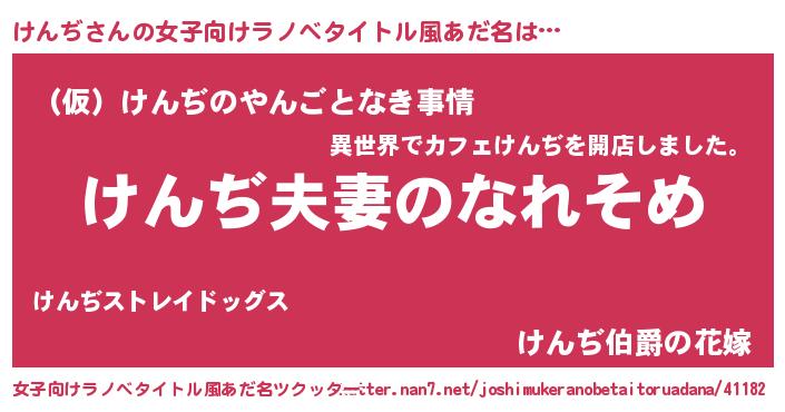 | 男性向けラノベタイトル風あだ名 | 『おまえをオタクにしてやるから、俺をけんぢにしてくれ! 』 |