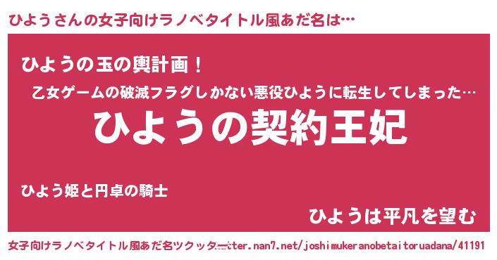 | 胡散臭い通販商品みたいなあだ名 | 『来世でも幸せになれる健康食品…その名も「ひよう」』 |