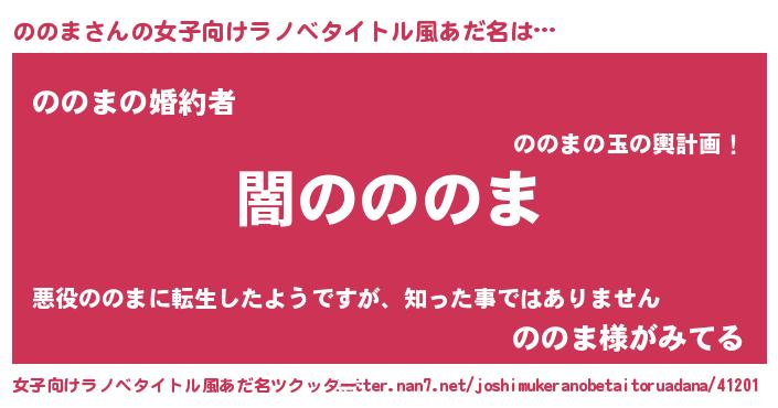 | ヒーロー風カッコイイあだ名 | 『サイバー戦士ノノマ』『炎刃騎士ノノ』 |