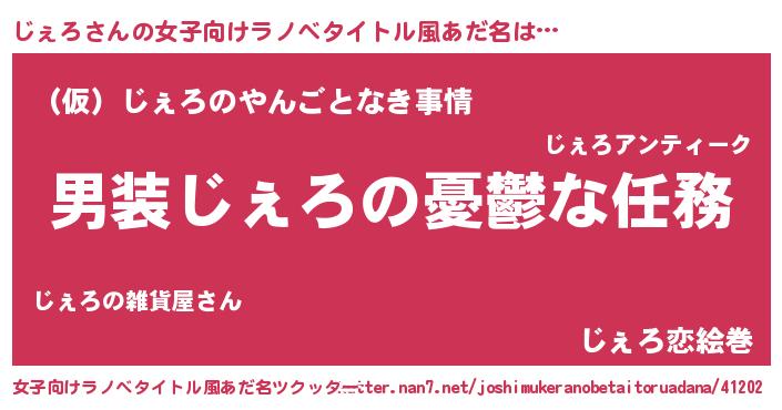 | 胡散臭い通販商品みたいなあだ名 | 『億万長者になれる水晶球…その名も「じぇろ」』 |