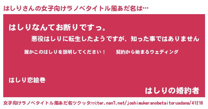 | 男性向けラノベタイトル風あだ名 | 『ハシリアートオンライン』 |