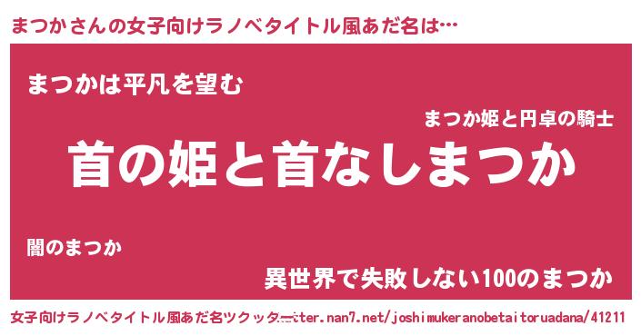 | 男性向けラノベタイトル風あだ名 | 『はたらくまつかさま!』 |