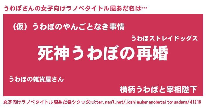 | 男性向けラノベタイトル風あだ名 | 『ノーゲーム・ノーウワボ』 |