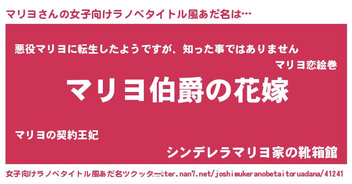 | 男性向けラノベタイトル風あだ名 | 『やはりマリヨの青春ラブコメはまちがっている 』 |