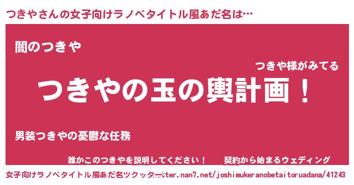 | 男性向けラノベタイトル風あだ名 | 『転生したらつきやだった件』 |