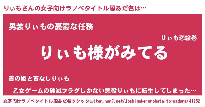 | 胡散臭い通販商品みたいなあだ名 | 『全米が絶賛したサプリメント…その名も「りぃも」』 |