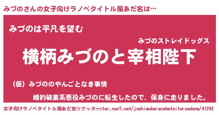 | 意味不明あだ名 | 『とにかく怪しいみづの』『自称みづの』 |