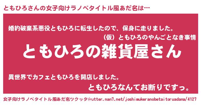 | ファンタジー風あだ名 | 『エターナルトモヒロー』『ゼトモトゥ』 |