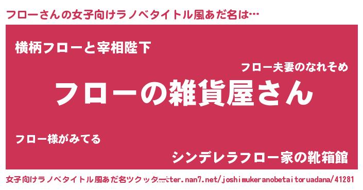 | 男性向けラノベタイトル風あだ名 | 『やはりフローの青春ラブコメはまちがっている 』 |