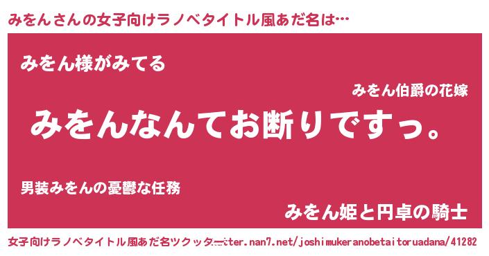 | ピコ太郎風あだ名 | 『ミヲ太郎』『ミコ十郎』『ピミ三郎』 |