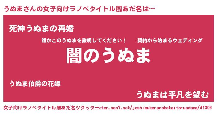 | ヒーロー風カッコイイあだ名 | 『最強戦士ウヌマ』『友情の使者うぬま』 |